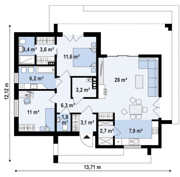 Проект одноэтажного дома с плоской крышей Zx77 D