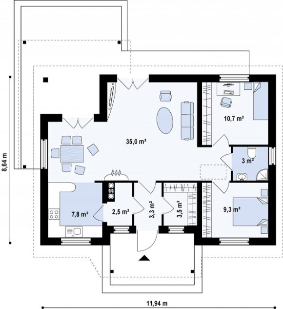 Проект одноэтажного дома с террасой Z136 minus