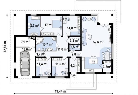 Проект одноэтажного дома с террасой Z153 GL
