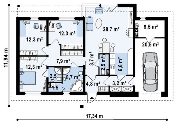 Проект одноэтажного дома с террасой Z165 v2.0