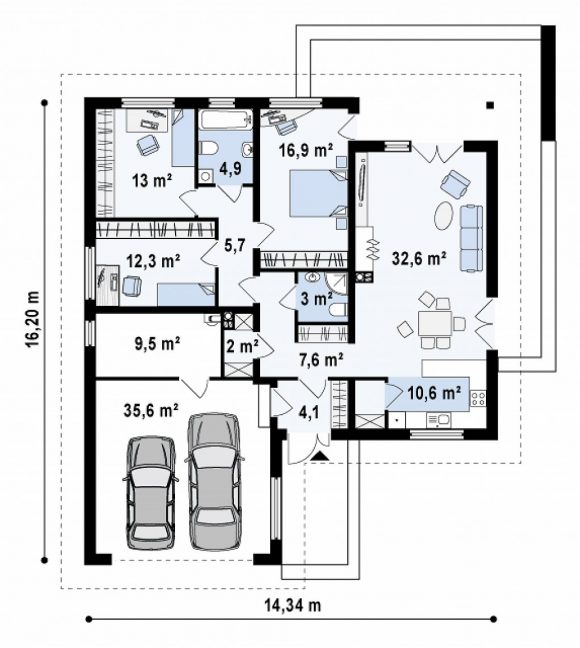 Проект одноэтажного дома с террасой Z203