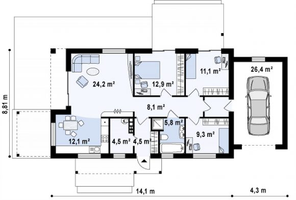 Проект одноэтажного дома с террасой Z258 GP