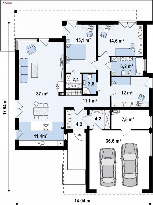 Проект одноэтажного дома с террасой Z271