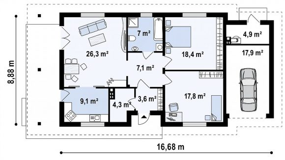 Проект одноэтажного дома с террасой Z55 GP