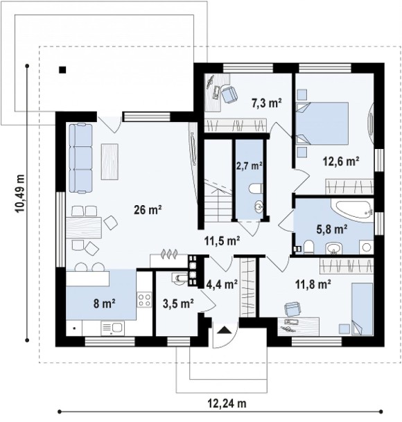 Проект одноэтажного дома с жилой мансардой Z273 Ph+ st