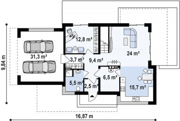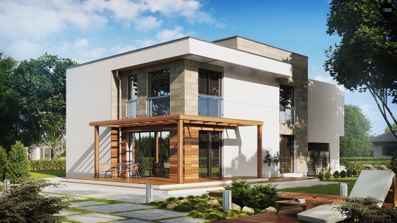 Проект современного загородного дома с гаражом на два автомобиля Zx114