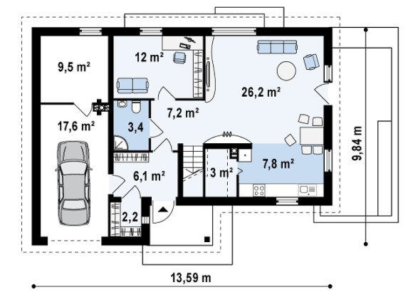 Be the first to review “Проект стильного дома с мансардой, гаражом и террасой Z125”
