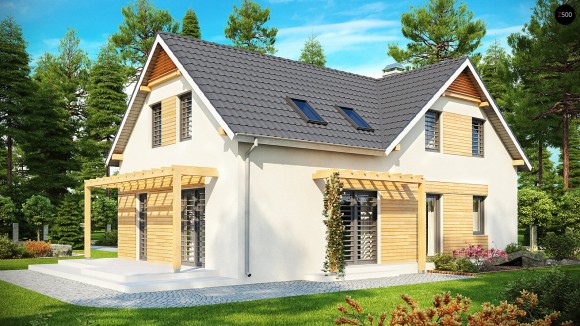 Проект стильного дома с мансардой, гаражом и террасой Z125