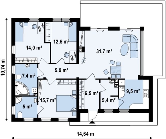 Проект ультрасовременного одноэтажного дома Zx35