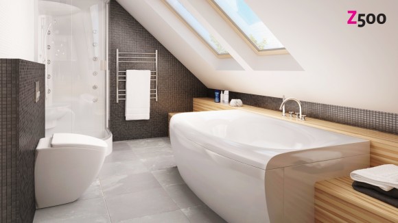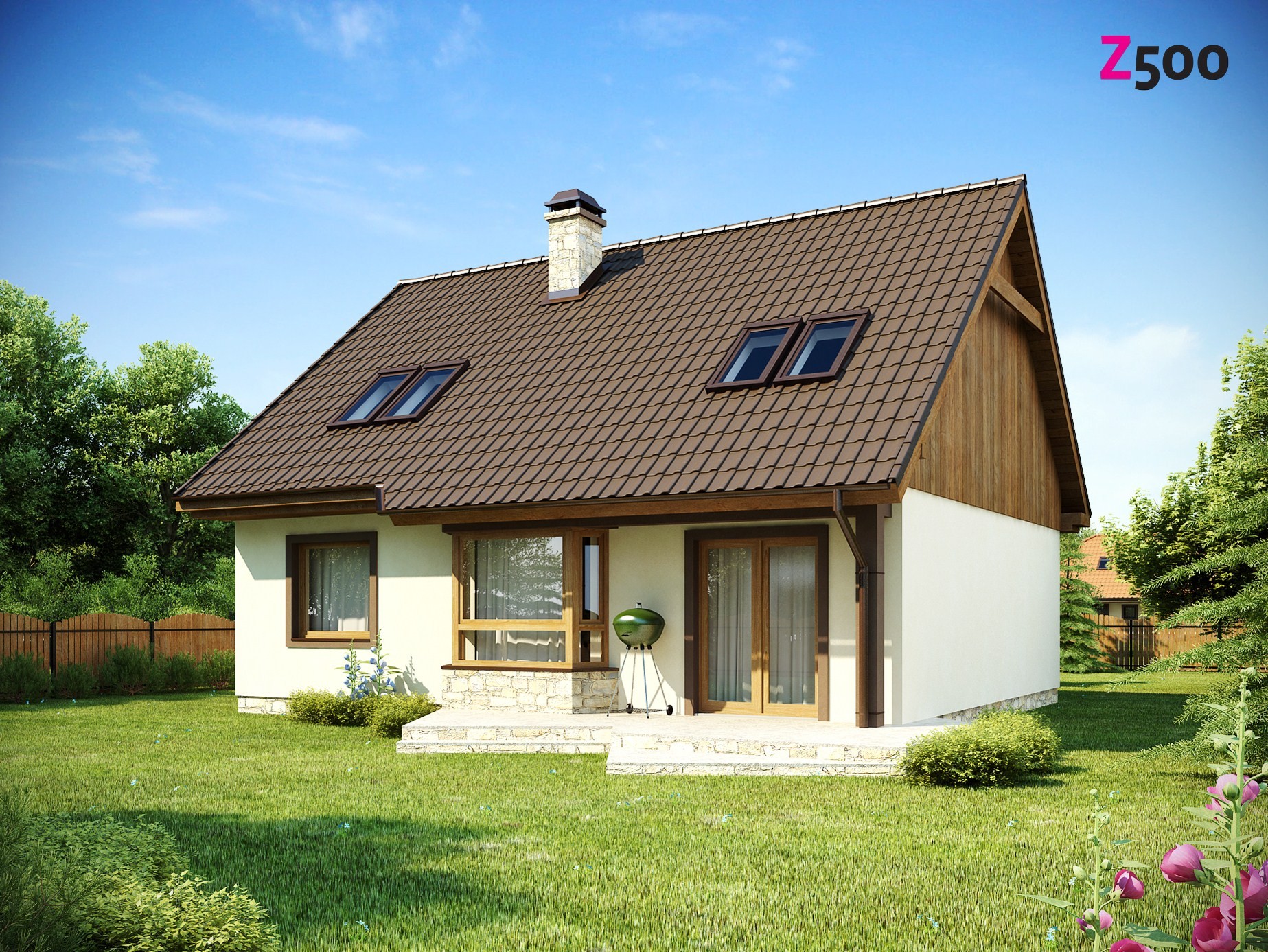 Проект дома с мансардой Z40 – это недорогое и функциональное решение для строительства загородного жилья. Отделка фасада несет в себе традиционный характер дома: здесь удачно сочетаются оштукатуренные стены первого этажа и деревянный мансардный этаж.