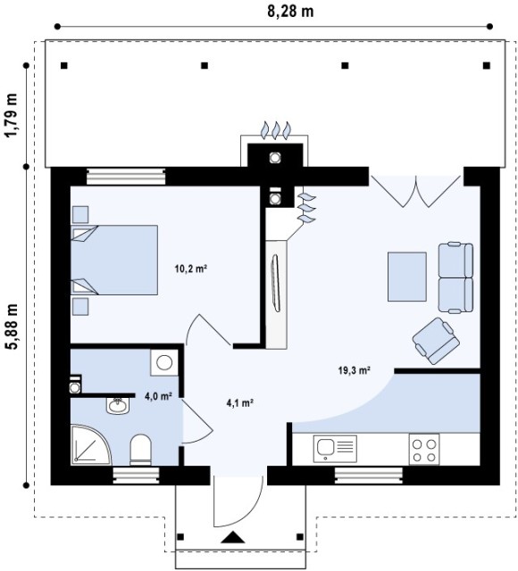 Проект одноэтажного дома с террасой Z334