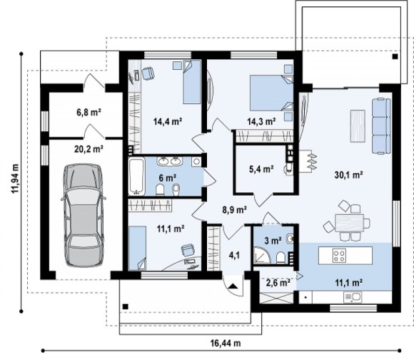 Be the first to review “Типовой проект одноэтажного дома с гаражом Z131”